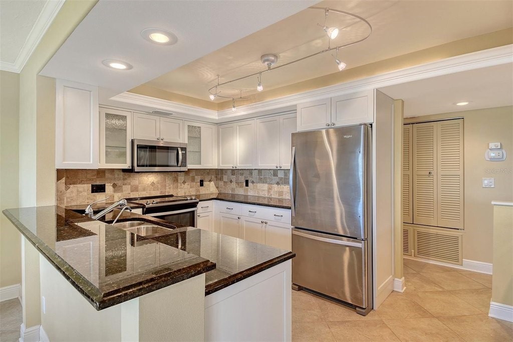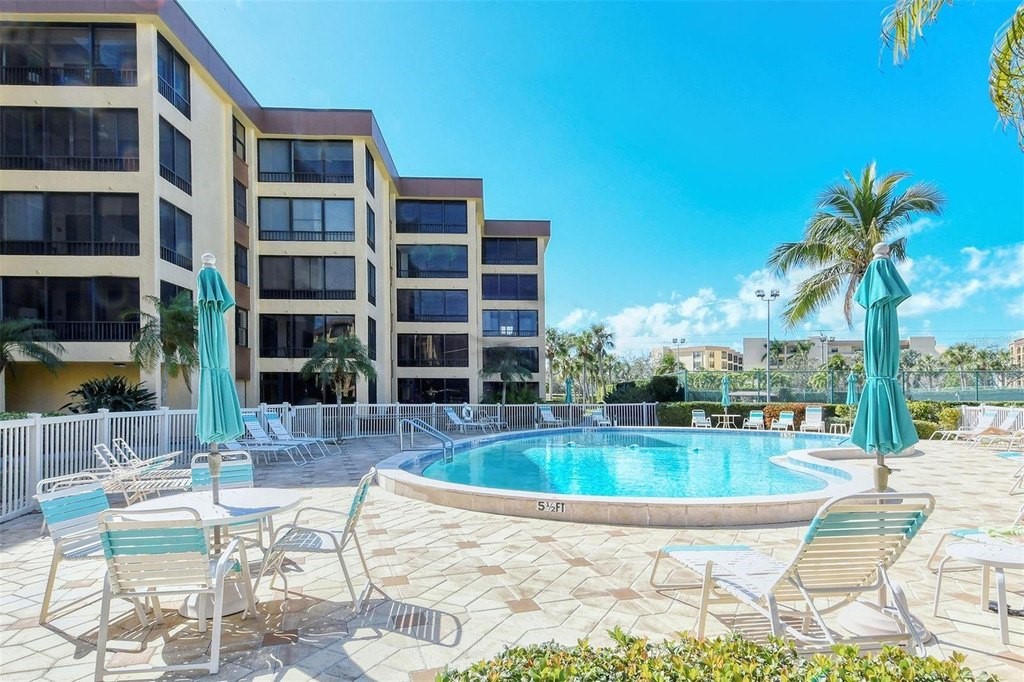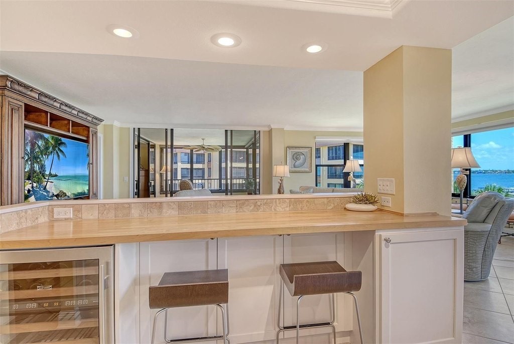 BEACH! BAY! ENJOY THE BAY VIEWS FROM THIS UPDATED REESIDENCE! IMPACT WINDOWS!! Kitchen with Granite countertop, stainless appliance, beverage refrigerator, two spacious bedrooms with private baths and walk-in closets. Powder room off foyer. Laundry in Residence. Turkey Furnished! Carport! Island Reef is a serene waterfront community, one of the few Gulf to Bay community that offers many desirable amenities including: Beach, Boat Docks (lifts allowed) two lit tennis courts, pickleball, 2 fitness rooms, Kayak Storage, Library, Billiards, game room, clubhouse, two heated pools and Gas Grills, PET FRIENDLY! Tropical Gardens add to the appeal of Island Reef and this wonderful community is close to two of Siesta Key’s popular restaurants. Complimentary trolley to Siesta Village for dining, shopping, ice cream, mini donuts, cute brunch spots and dancing and live music every night of the week!